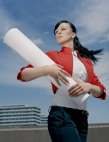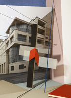 Die Herangehensweise Christine Erhards ist die einer Bildhauerin. Sie konstruiert Bildräume, in denen sich Blickachsen und Realitätsebenen kreuzen, überlagern und auf diese Weise schließlich unterschiedliche Perspektiven im Bild erzeugen. Mit dieser Serie – aus Architekturfotografien und mit Referenzen an den Konstruktivismus – gelingt es der Fotografin, Bildwerke zu kreieren, die einen installativen Charakter tragen und avantgardistische Ästhetiken reflektieren. Christine Erhards Präsentation beeindruckt insbesondere dadurch, wie sie formalästhetisch unterschiedliche künstlerischere Gattungen in die zeitgenössische Fotografie transferiert.